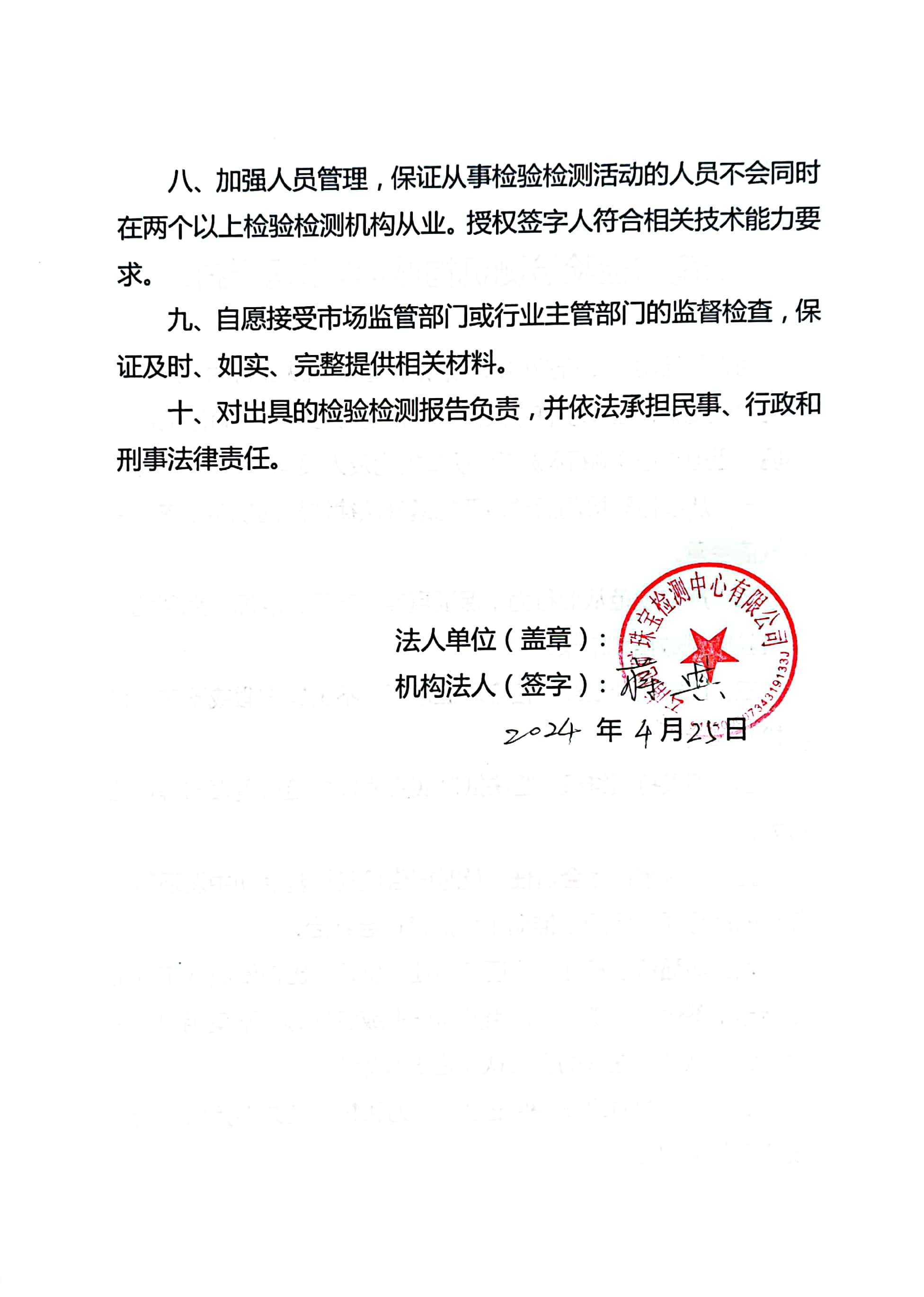 云南地礦珠寶檢測中心有限公司誠信守法承諾書(shū)